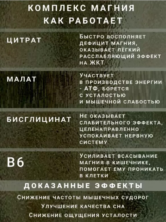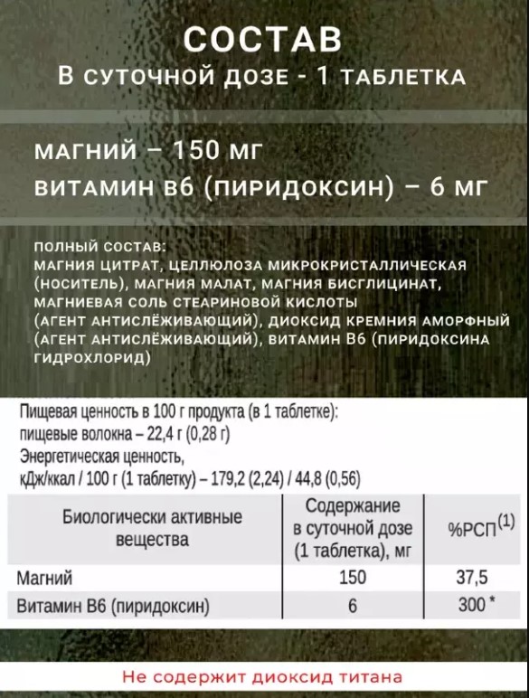 • Снижение усталости: Комбинация магния и витамина B6 помогает уменьшить чувство усталости и повышает работоспособность.