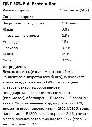 QNT Протеиновый батончик 50% Full Protein Bar, 50 г