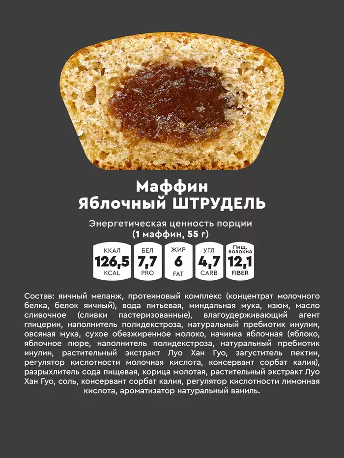 Mr. Djemius Протеиновый маффин Zero Muffin ROCKY Яблочный штрудель, 55 г