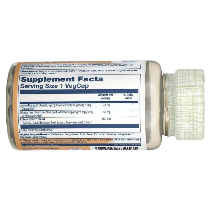Solaray Пищевая добавка с лютеином для здоровья глаз Черника и голубика, 60 капсул