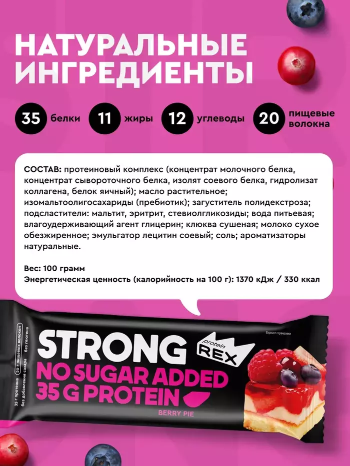 Proteinrex Батончик протеиновый 35% Strong Ягодный пай, 100 г