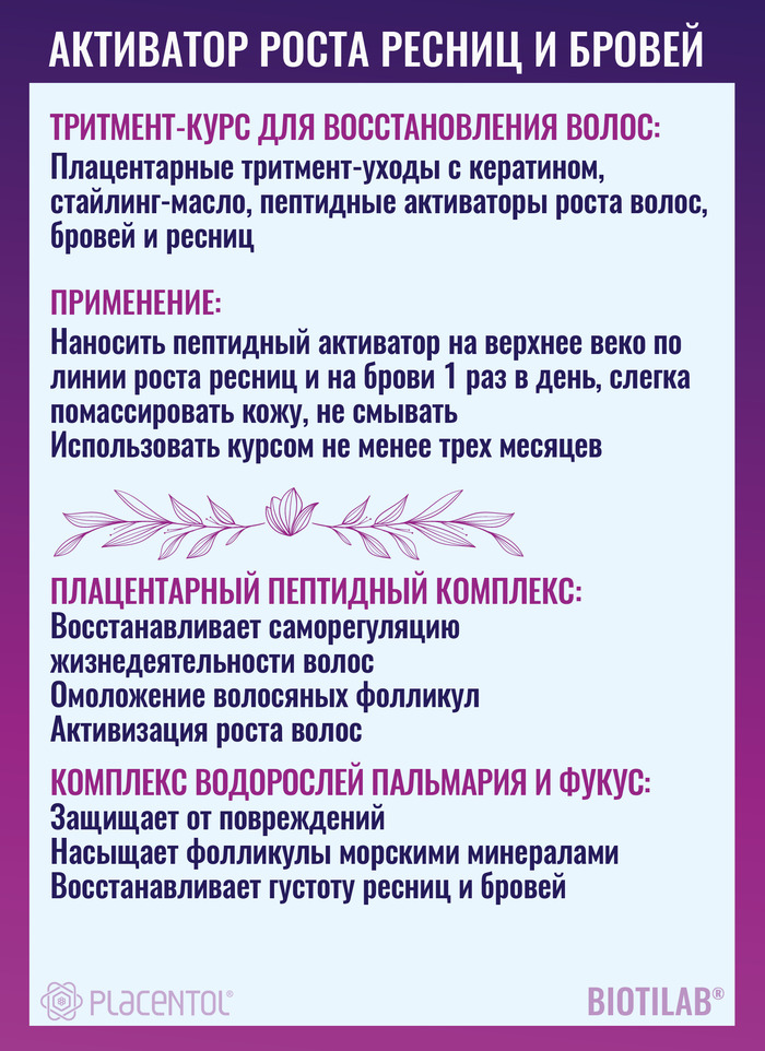 Активатор роста ресниц и бровей "Пальмария и фукус"-это пептидный кератиновый молекулярный тритмент-уход для кожи вокруг глаз,который способствует активнному росту ресниц и бровей,оказывает кератиновое пептидное восстановление,укрепляет волосяные луковицы,защищает от выцветания и фотостарения,улучшает микроциркуляцию в коже головы, стимулирует метаболизм волосяного фолликула и обеспечивает питание луковиц,стимулирует переход волосяных фолликул из фазы покоя в фазу роста,интенсивно питает и восстанавливает волосяные фолликулы, укрепляет структуру существующих волосков и стимулирует активный рост новых.Раньше Вам требовалось много времени для того,чтобы добиваться выразительного взгляда с помощью туши,накладных ресниц или наращивания.С нашим активатором можно забыть о применении туши,геля,накладных ресниц или наращивания,ведь Ваши ресницы и брови будут выглядеть просто волшебно.Активные ингредиенты: пептидная биосыворотка "Плацентоль100%". молекулярный комплекс Moleveil4тм концентрат водорослей пальмарии и фукуса, экстракты люпина, люцерны, овса, петрушки, солодки яблока. Действие: инновационная формула активизирует рост ресниц и бровей на молекулярном уровне, укрепляет волосяные луковицы. 3D молекулярная вуаль обволакивает каждый волосок, защищает ресницы и брови от выцветания и фотостарения.Активатор роста ресниц и бровей "Пальмария и фукус" доказал свою эффективность в клинических испытаниях.На него идет гарантия на год от производителя.Если вы хотите убедиться в качестве товара,то по Вашему запросу мы предоставим сертификат. Если во время эксплуатации товара возникли проблемы,напишите нам и специалисты ответят на все интересующие вопросы,и помогут с их решением.Активатор роста ресниц и бровей "Пальмария и фукус" – лучшее средство для Ваших ресниц и бровей!