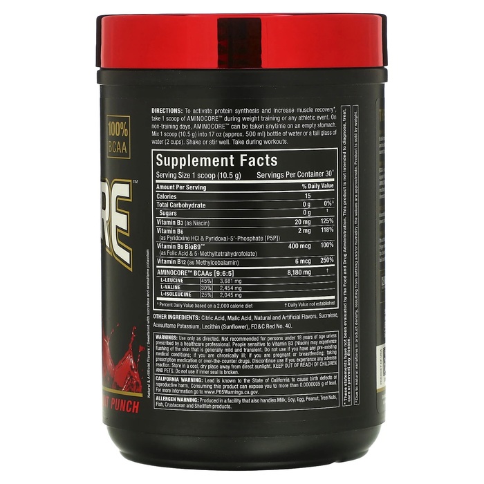 Зачем использовать Allmax Aminocore? Не все BCAA одинаковы. Смесь Aminocore содержит 8,18 г BCAA в соотношении 9:6:5, которое, как было клинически доказано, обеспечивает увеличение активации сигналов роста мышц на 350%! Aminocore — самый чистый источник BCAA в свободной форме, без наполнителей или аминокислот, не относящихся к BCAA. В Aminocore кислоты в соотношении 9:6:5 на 100% чисты до начала ароматизации. Обычные источники с содержанием 2:1:1 включают примеси, приводящие к помутнению, маслянистой пене, осадку и, что еще хуже, неприятному горькому вкусу! Aminocore — это самая чистая и вкусная добавка с BCAA, которую можно купить за деньги!