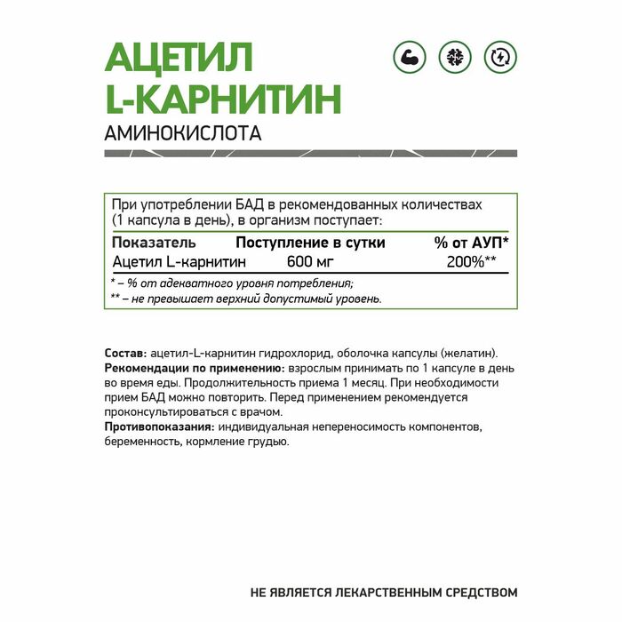 Ацетил L-Карнитин от NaturalSupp — это биологически активная форма L-карнитина, известная своей способностью поддерживать работу мозга, улучшать интеллект, память и внимание. Этот продукт также популярен среди спортсменов для поддержания физической активности и улучшения общего самочувствия.