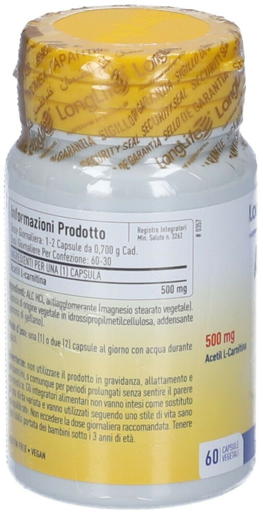 LongLife Аминокислота ALC Ацетил L-карнитин (500 мг), 60 вегетарианских капсул