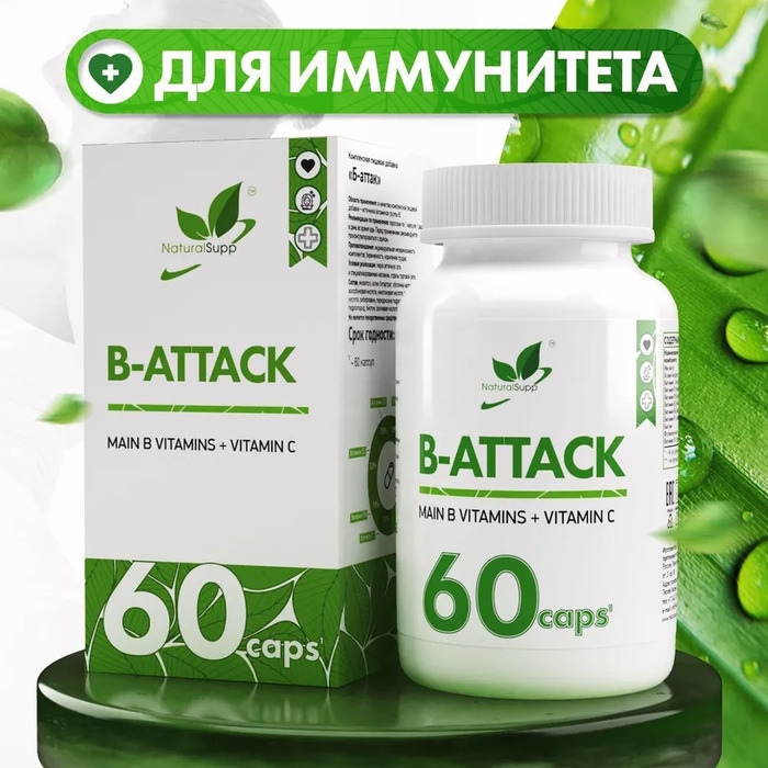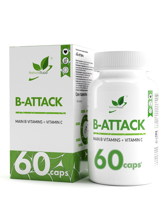 NaturalSupp Аминокислота B-Attack 60 капсул — это витаминный комплекс, разработанный для поддержки и улучшения различных аспектов здоровья и физической формы. Этот продукт содержит витамины группы B, которые играют важную роль в энергетическом метаболизме, синтезе белков и поддержании здоровья нервной системы.