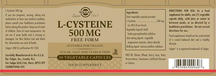 Solgar Аминокислота L-Цистеин (500 мг), 30 капсул
