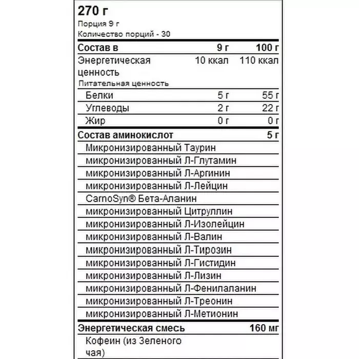Essential Amino Energy содержит бета-аланин, который может вызвать временное покалывание кожи. Это безопасная реакция, и со временем интенсивность ощущений снижается. Продукт не рекомендуется принимать за 6 часов до сна из-за содержания кофеина.