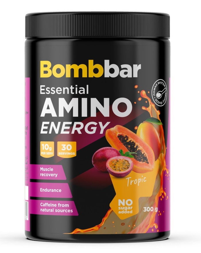 Bombbar Аминокислотный комплекс AMINO ENERGY Тропик, 300 г — это инновационный продукт, созданный для поддержки вашего организма в период интенсивных тренировок и активного образа жизни. Этот комплекс аминокислот способствует быстрому восстановлению мышц, повышению уровня энергии и улучшению общего самочувствия.