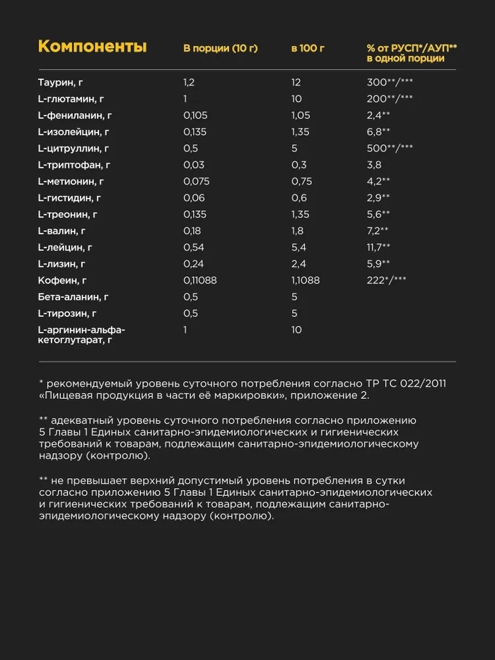 - Увеличение энергии: Формула обогащена натуральными энергетиками, такими как кофеин и таурин, которые помогают повысить выносливость и концентрацию во время тренировок.