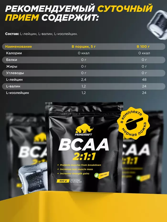 Prime Kraft Аминокислотный комплекс BCAA 2:1:1 Pure, 500 г — это высококачественная добавка, созданная для поддержки мышечного роста, ускорения восстановления и повышения общей выносливости. Этот продукт идеально подходит для спортсменов и активных людей, стремящихся улучшить свои результаты и поддерживать оптимальную физическую форму.