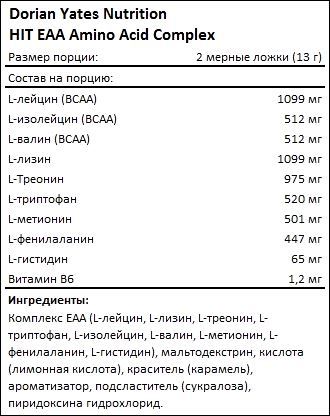 Dorian Yates EAA HIT Amino Acid отличается высокой биодоступностью и качеством ингредиентов. Продукт разработан с учетом потребностей профессиональных спортсменов и любителей фитнеса, стремящихся к улучшению своих результатов и поддержанию здоровья.