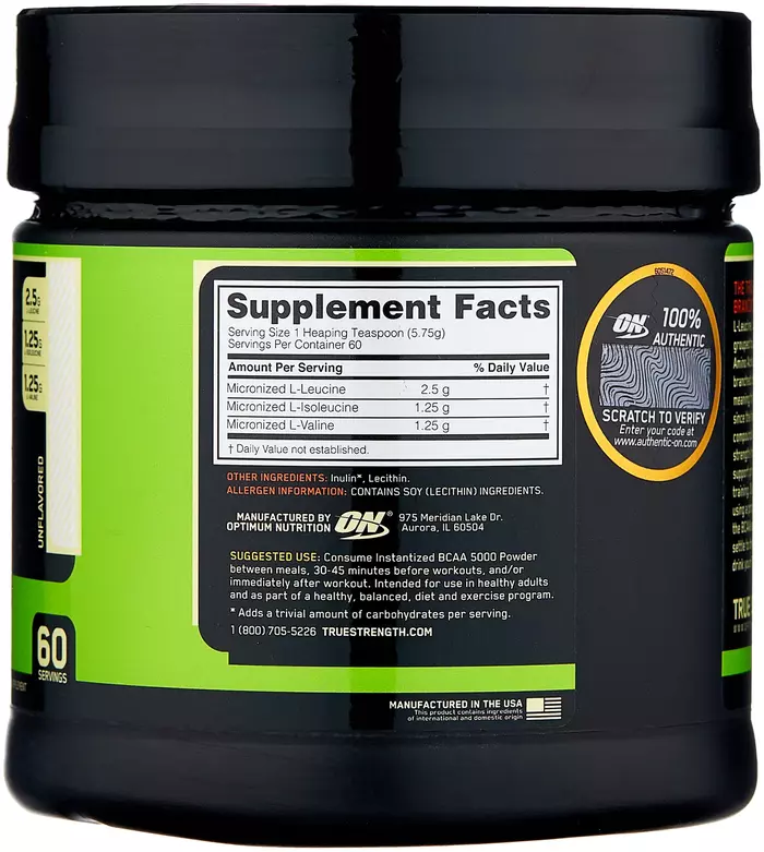 Optimum Nutrition Аминокислоты BCAA 5000 — это добавка, содержащая аминокислоты с разветвленной цепью (BCAA) в оптимальной дозировке для поддержания и восстановления мышечной массы. Продукт не имеет вкуса, что позволяет легко добавлять его в любые напитки без изменения их вкусовых качеств.