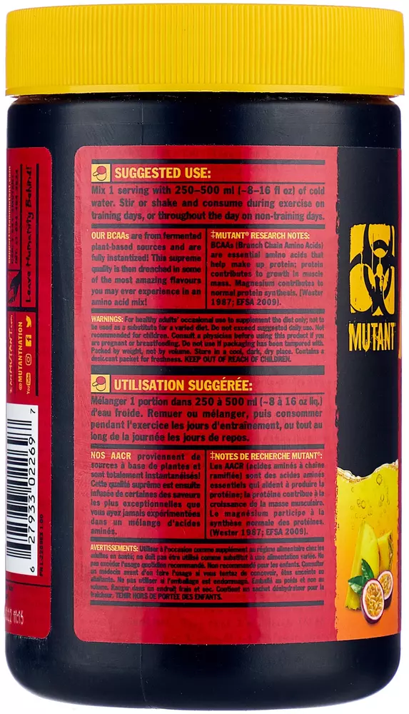 Mutant BCAA 9.7 принимают в момент тренировки в виде раствора 1 мерной ложки в сутки. Содержит соевый лецитин и яблочную кислоту.