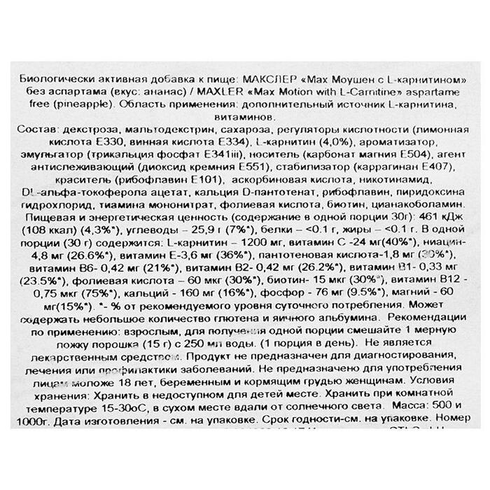 Maxler Изотоник Max Motion With L-Carnitine Ананас, 500 г