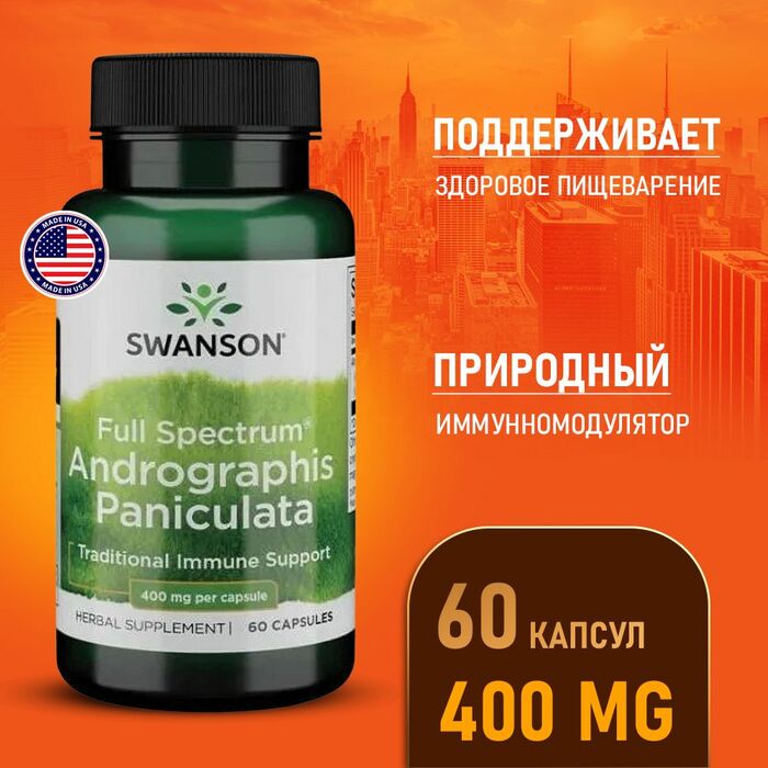 Swanson Андрографис Метельчатый (400 мг), 60 капсул