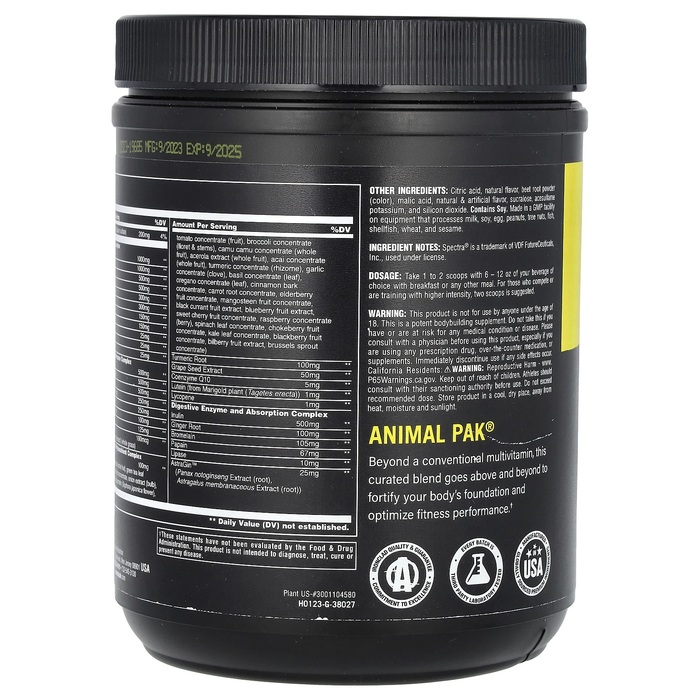 Spectra® — это полностью натуральная смесь из 29 фруктов, овощей и трав, которая помогает увеличить приток крови к мышцам и поддерживать клеточную энергию за счет повышения содержания кислорода, а Astragin™ помогает улучшить усвоение и биодоступность питательных веществ.