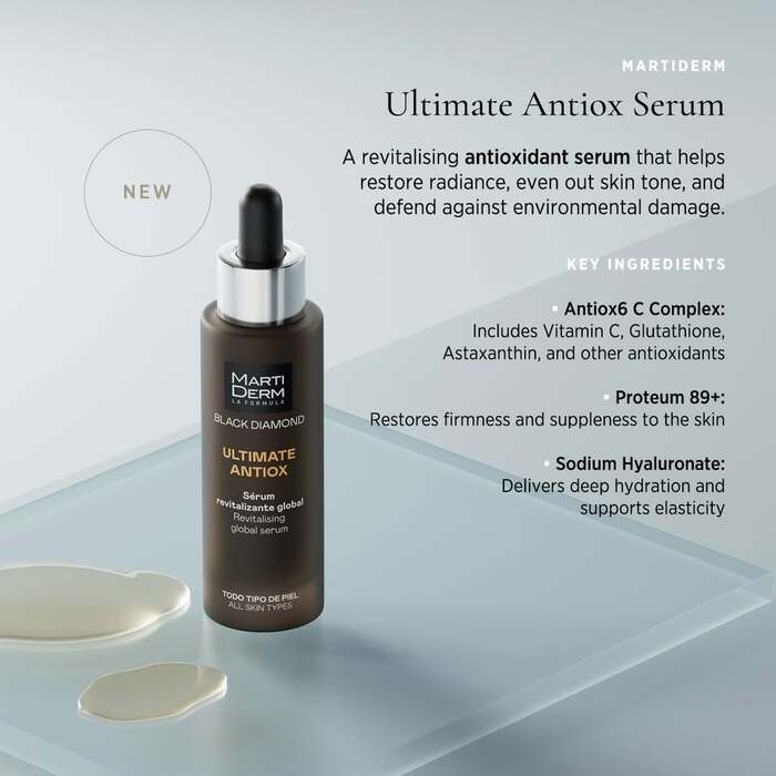 Сыворотка Martiderm BLACK DIAMOND Ultimate Antiox имеет легкую текстуру и быстро впитывается, что делает её идеальной основой под макияж. Рекомендуется использовать её как часть ежедневного ухода за кожей для достижения максимального эффекта.