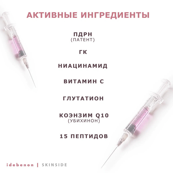 • Антиоксидантная защита: Идебенон обладает мощными антиоксидантными свойствами, защищая кожу от свободных радикалов.