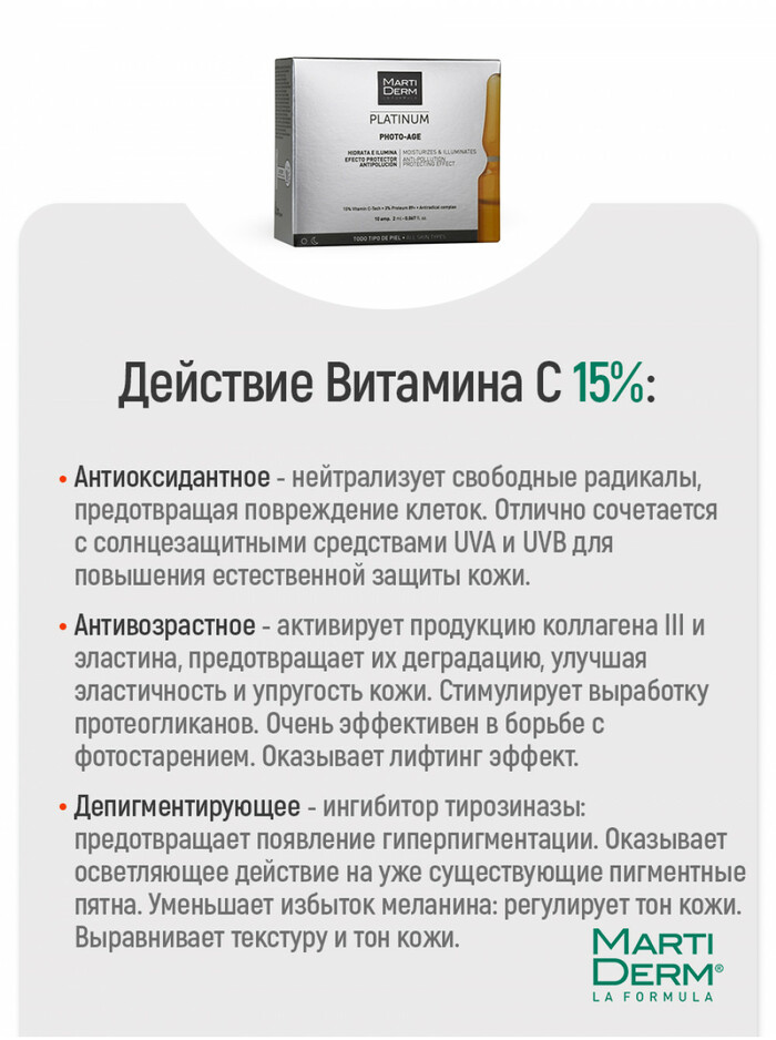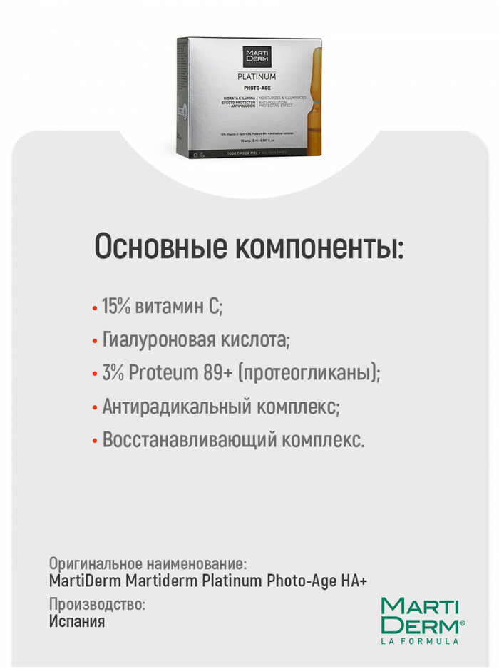 Martiderm Антивозрастные ампулы для осветления и укрепления кожи Platinum Photo-Age, 2 мл, 10 шт