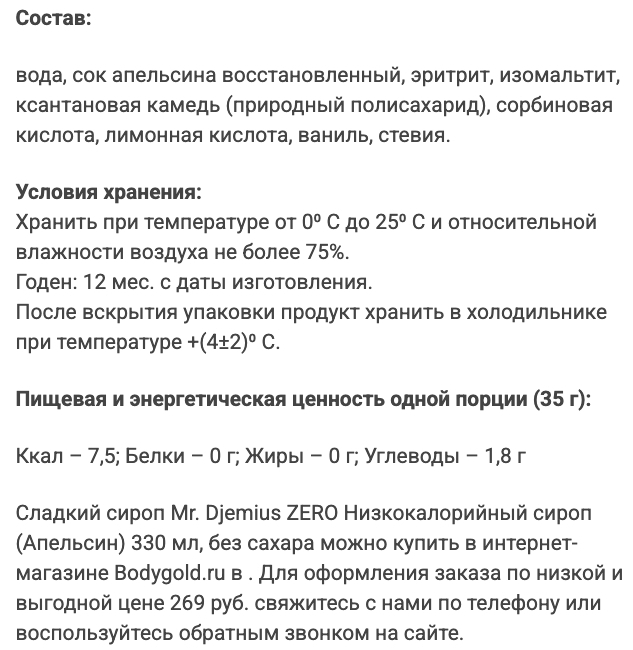 Mr. Djemius Сироп низкокалорийный ZERO Апельсин, 330 мл
