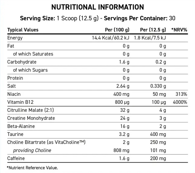 Смешайте 1 порцию 10,5 г (1 мерная ложка без горки) с 250 мл холодной воды и выпейте за 15 минут до тренировки.