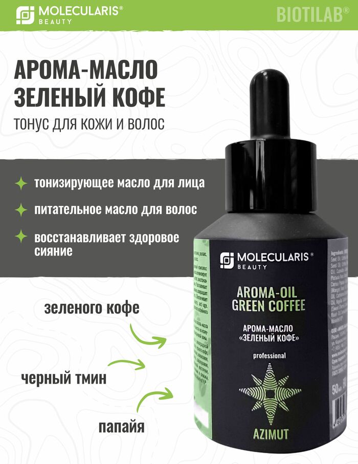 MOLECULARIS BEAUTY Арома масло Зеленый кофе для лица и волос, 50 мл