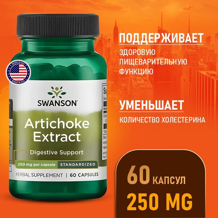 Swanson Артишок (250 мг) — это натуральная добавка, разработанная для поддержки здоровья пищеварительной системы. Каждая капсула содержит 250 мг экстракта артишока, который способствует улучшению пищеварения и обмена веществ.