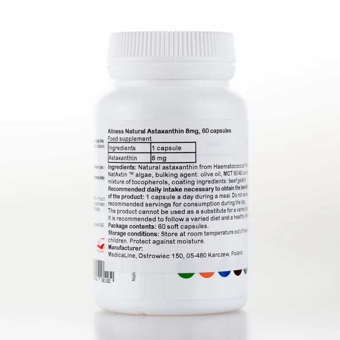 Капсулы Астаксантина Aliness NatAxtin легко проглатываются и подходят для ежедневного использования. Рекомендуется для людей, ведущих активный образ жизни, а также для тех, кто хочет поддерживать здоровье на высоком уровне.