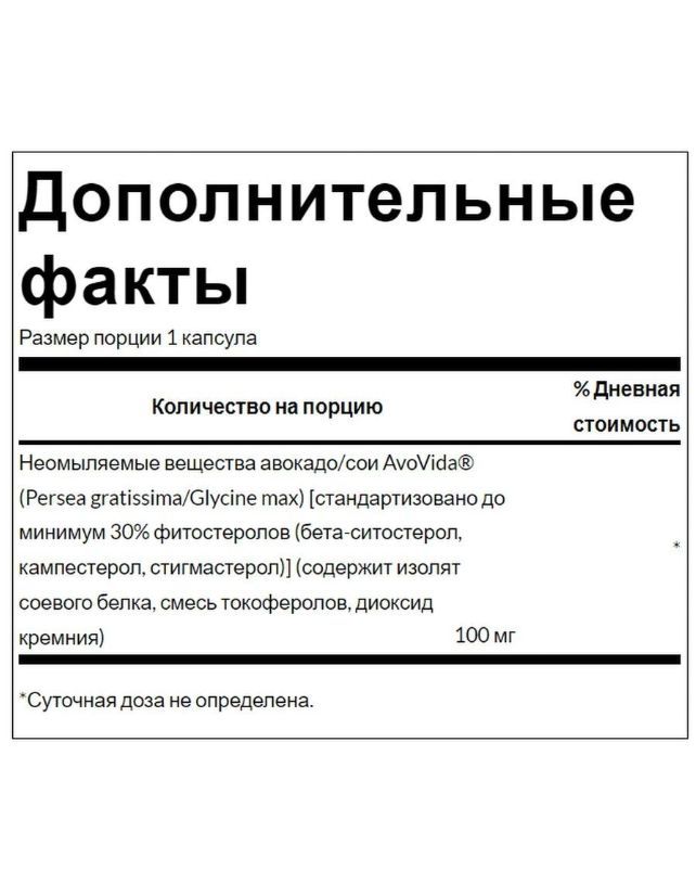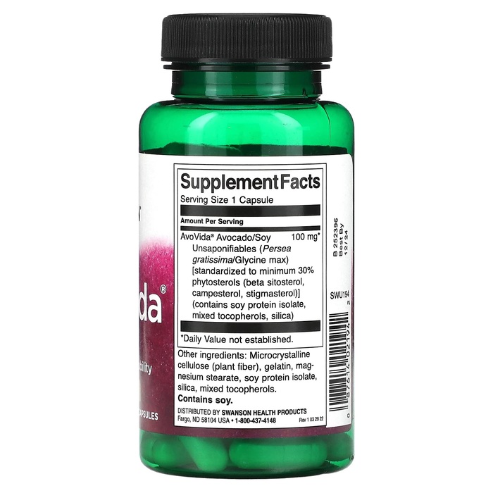 Теперь есть питательное средство для поддержки тканей суставов, которое увеличивает подвижность и комфорт. Пищевая добавка AvoVida от Swanson, стандартизированная с содержанием не менее 30% неомыляемых веществ из авокадо и сои, является последним прорывом в поддержании здоровья суставов. Идеальная альтернатива хондроитину растительного происхождения, ASU стимулирует выработку организмом жизненно важных компонентов ткани суставов, чтобы максимизировать подвижность, и не вызывает расстройства желудка или других неприятных побочных эффектов, связанных с другими продуктами для суставов.