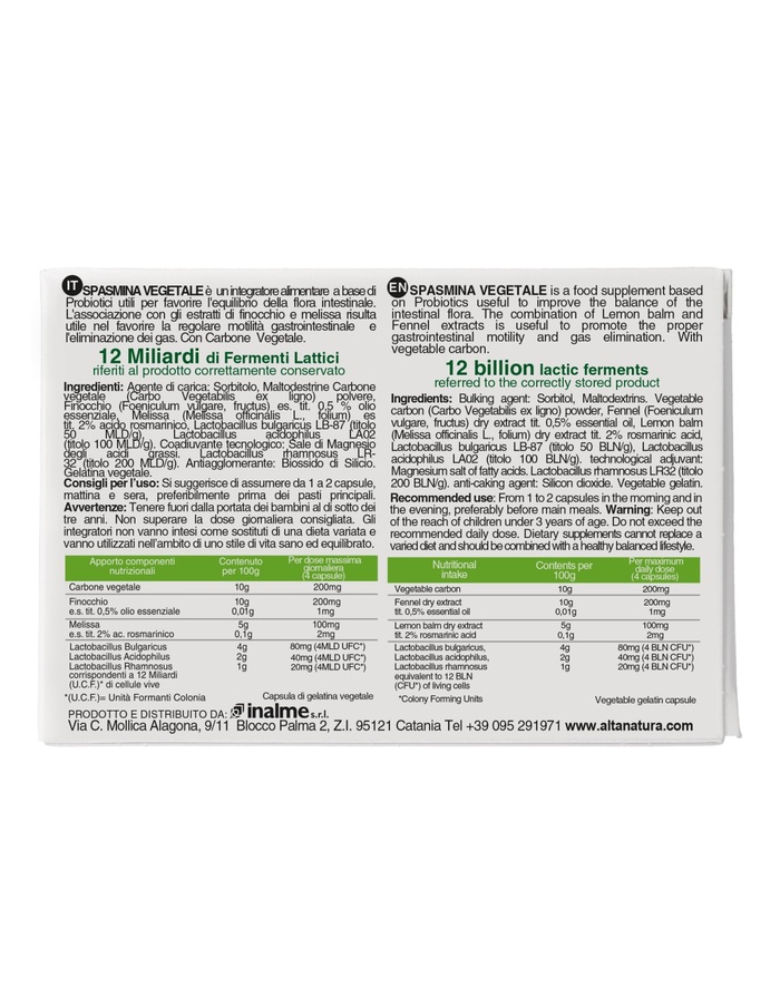 Капсулы Alta Natura Spasmina Vegetale имеют растительное происхождение и не содержат искусственных добавок. Продукт подходит для использования в стрессовых ситуациях и при необходимости расслабления.