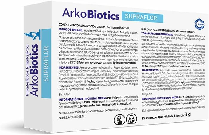 • Поддержка микрофлоры: Arkobiotics Supraflor содержит живые культуры, которые помогают восстановить и поддерживать здоровую микрофлору кишечника.
