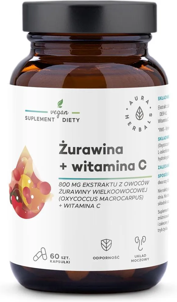 Капсулы легко проглатываются и подходят для ежедневного использования. БАД Aura Herbals Клюква 800мг + Витамин С рекомендуется принимать в периоды повышенных нагрузок и в сезон простуд.