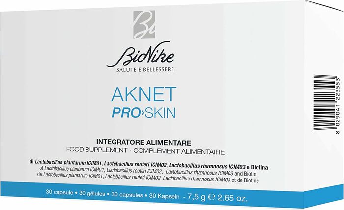 БАД Bionike Aknet Pro Skin — это эффективное решение для поддержания здоровья кожи. В каждой упаковке содержится 30 капсул, которые помогают улучшить состояние кожи и предотвратить появление акне.