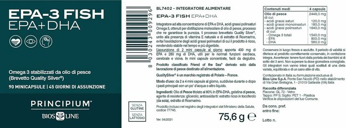 БАД Bios Line EPA-3 Fish — это высококачественный источник омега-3 жирных кислот, который поддерживает здоровье сердечно-сосудистой системы. В каждой упаковке содержится 90 мини-капсул, что обеспечивает удобство в использовании и дозировке.
