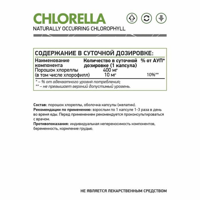 NaturalSupp БАД Хлорелла — это добавка, содержащая хлореллу, одноклеточную водоросль, известную своими очищающими и питательными свойствами. Хлорелла помогает детоксикации организма, выводя токсины и тяжелые металлы, а также поддерживает нормализацию обмена веществ.