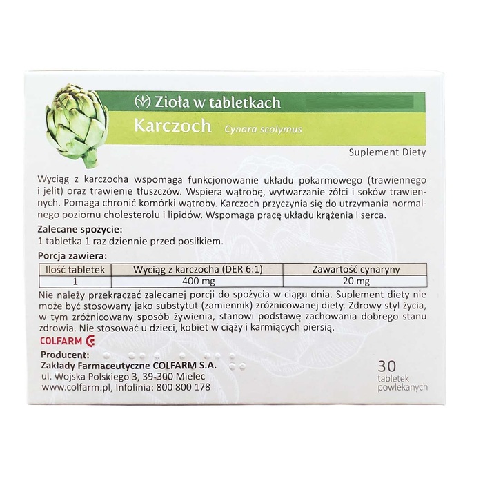БАД Colfarm Artischocke Артишок — это высококачественный продукт, который поддерживает здоровье печени и способствует нормализации обмена веществ. В каждой упаковке содержится 30 таблеток, которые легко принимать и удобно дозировать.