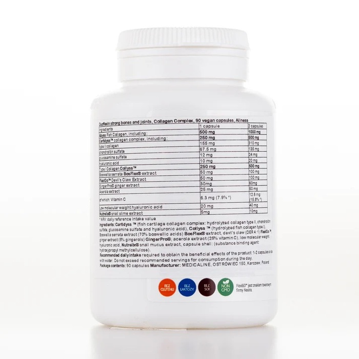 Капсулы Aliness Duoflexin Strong Joints and Bones легко проглатываются и подходят для ежедневного использования. Рекомендуется для людей, ведущих активный образ жизни, а также для пожилых людей, испытывающих проблемы с суставами.