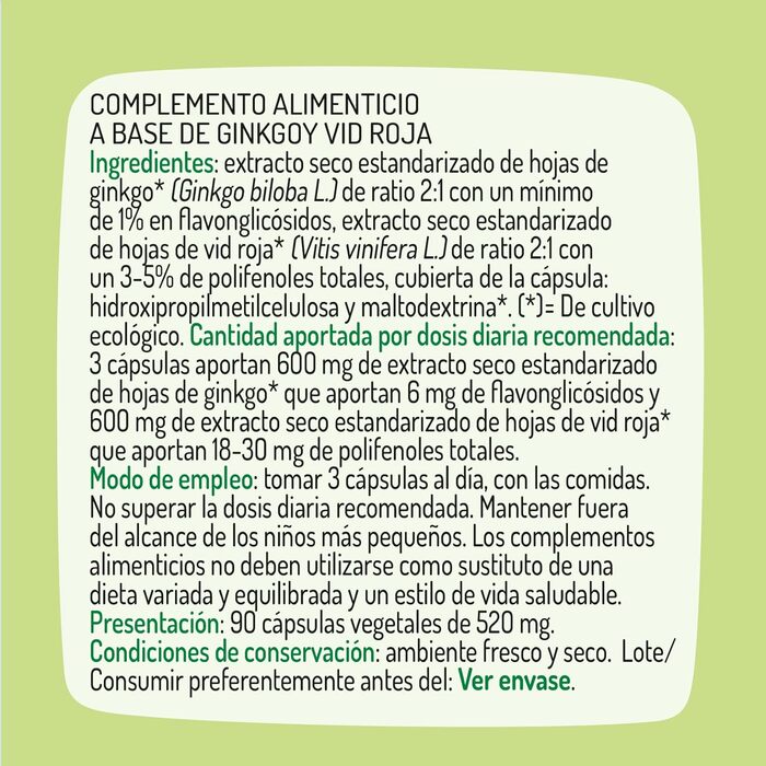 Капсулы легко проглатываются и подходят для ежедневного использования. БАД El Granero Integral Гинкго Билоба и Красный Виноград идеально подходит для людей, ведущих активный образ жизни и желающих поддерживать свое здоровье на высоком уровне.