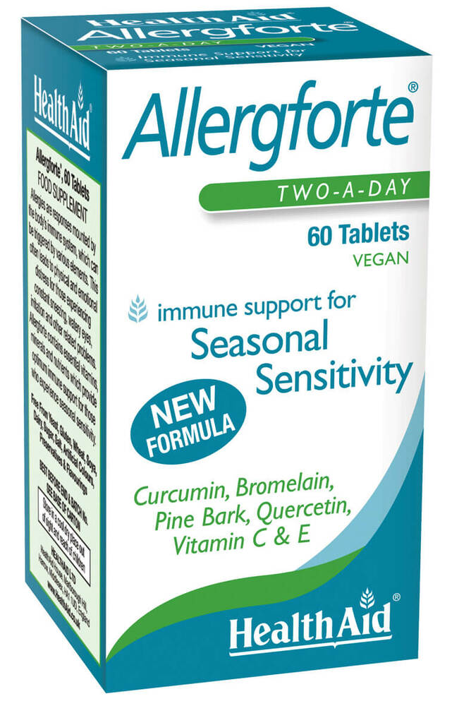 БАД Health Aid Allergforte - Кверцетин, кора сосны, куркумин — это эффективная формула для поддержки организма. В каждой упаковке содержится 60 веганских таблеток, которые помогут вам справиться с сезонными аллергиями и поддержать общее состояние здоровья.