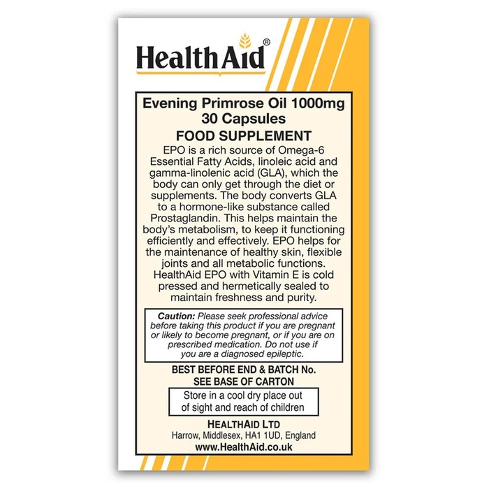 Health Aid БАД Health Aid Evening Primrose Масло примулы вечерней 1000 мг, 30 капсул