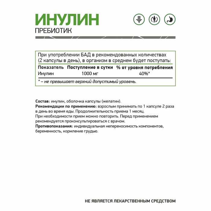 NaturalSupp Инулин 500 мг — это биологически активная добавка, содержащая инулин, натуральное растительное волокно, которое способствует улучшению работы пищеварительной системы. Инулин действует как пребиотик, стимулируя рост полезных бактерий в кишечнике, что помогает улучшить пищеварение и поддерживать баланс микрофлоры.
