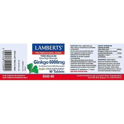 Lamberts БАД Lamberts Ginkgo Biloba 6000 мг 60 таблеток