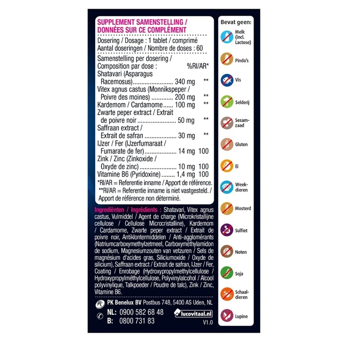 Lucovitaal БАД для поддержки гормонального баланса у женщин Vrouw, 60 табл