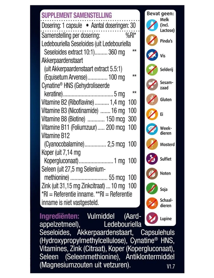 Капсулы Lucovitaal Hair Growth & Volume легко принимать и подходят для ежедневного использования. Рекомендуется для людей, испытывающих проблемы с волосами, а также для тех, кто хочет улучшить их внешний вид.