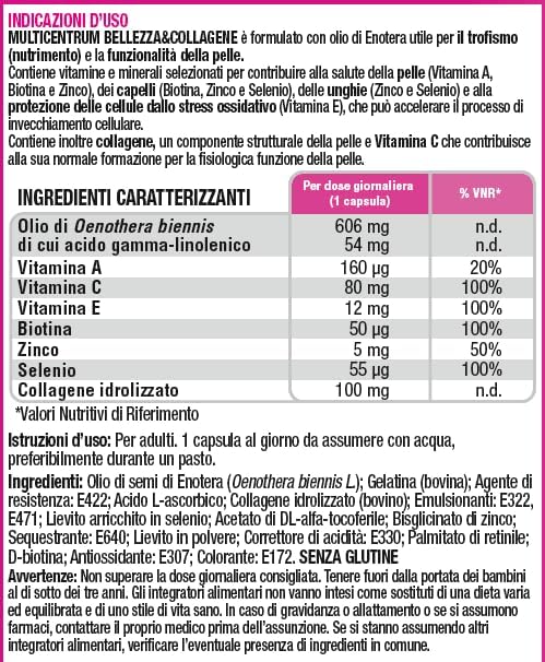 БАД Multicentrum Beauty & Collagen для кожи, волос и ногтей — это идеальное решение для поддержания красоты и здоровья ваших волос, кожи и ногтей. В каждой упаковке содержится 30 капсул, которые обеспечивают ваш организм необходимыми витаминами и минералами для поддержания молодости и сияния.