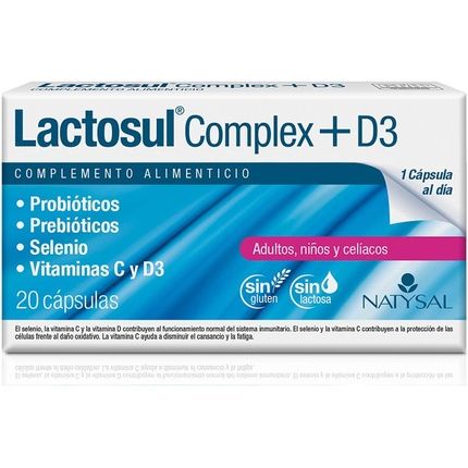 БАД Natysal LACTOSUL Complex+D3 — это эффективный комплекс для поддержания здоровья, содержащий 20 капсул, которые обеспечивают организм необходимыми веществами.