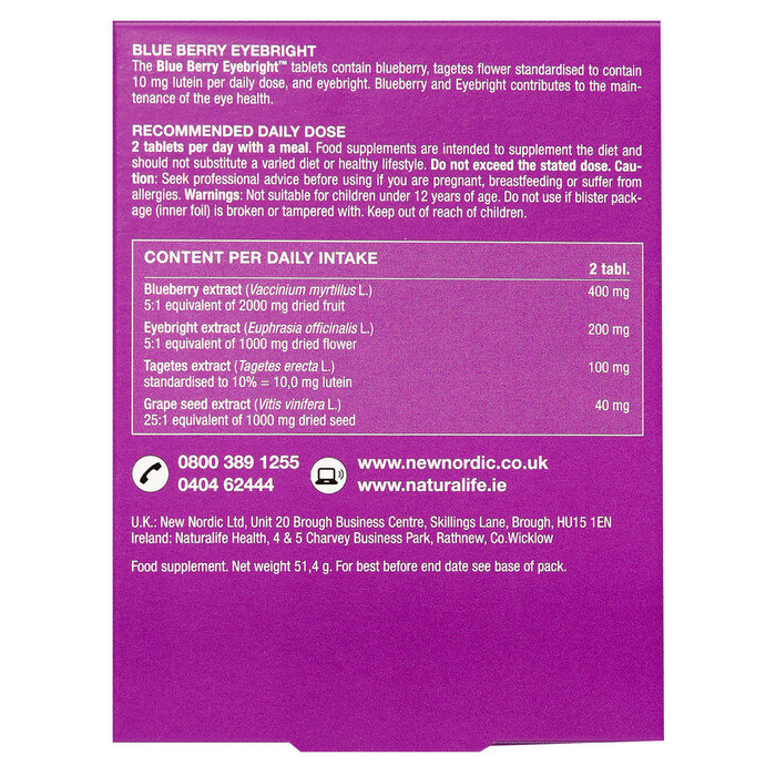 Таблетки New Nordic Blu Berry имеют оптимальную дозировку активных компонентов, что делает их идеальными для регулярного приема. Продукт подходит для людей, работающих за компьютером, а также для тех, кто хочет поддерживать здоровье глаз в условиях повышенной нагрузки.
