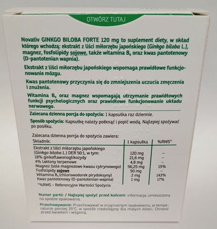 Капсулы Novativ Ginkgo Biloba Forte легко проглатываются и подходят для ежедневного использования. Рекомендуется для людей, испытывающих умственные нагрузки, а также для пожилых людей для поддержания когнитивных функций.