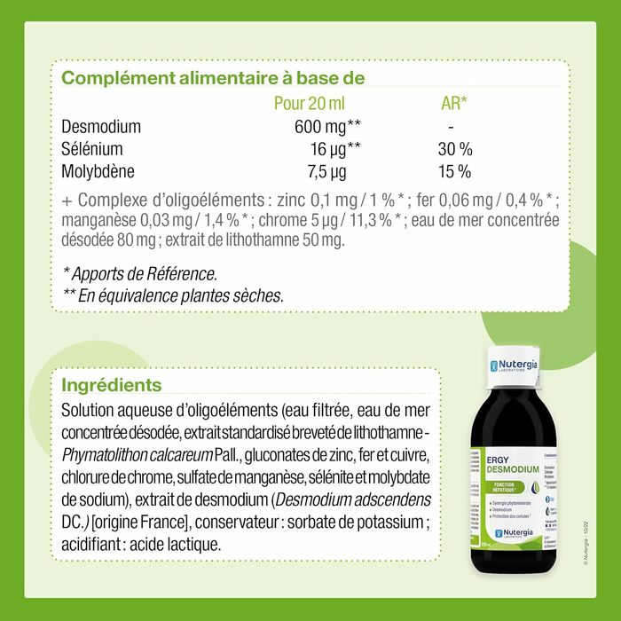 Nutergia Ergydesmodium представлен в удобной форме жидкого раствора, что облегчает его применение. Продукт подходит для людей, ведущих активный образ жизни, и может использоваться в качестве дополнения к основному рациону.